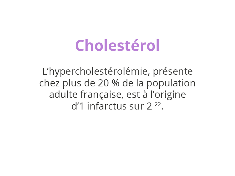 L’hypercholestérolémie, présente chez plus de 20 % de la population adulte française, est à l’origine d’1 infarctus sur 2 22.